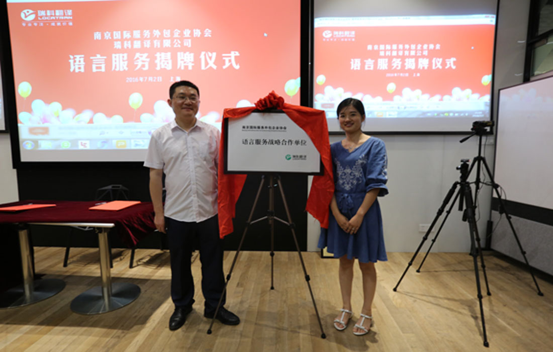 在慶典儀式上,南京市外包協(xié)會(huì)與瑞科翻譯公司舉行了“語(yǔ)言服務(wù)戰(zhàn)略合作單位”的揭牌儀式,期望借此合作能夠?yàn)榉?wù)外包企業(yè)在語(yǔ)言上提供更專業(yè)的服務(wù)。同時(shí),瑞科翻譯有限公司與寧淮現(xiàn)代服務(wù)業(yè)集聚區(qū)管委會(huì)進(jìn)行了“語(yǔ)言服務(wù)合作簽約儀式”。據(jù)悉,在南京市外包協(xié)會(huì)5月組織的寧淮現(xiàn)代服務(wù)業(yè)集聚區(qū)的參觀考察中,瑞科翻譯公司與寧淮現(xiàn)代服務(wù)業(yè)集聚區(qū)已達(dá)成初步合作意向,現(xiàn)在此次慶典上成功簽約。